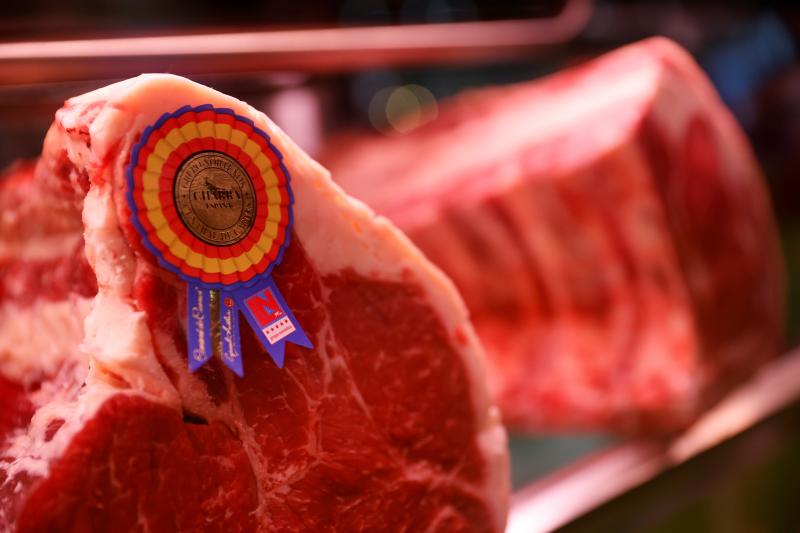 这是2021年5月31日在西班牙马德里融合美食展上拍摄的牛肉食材。