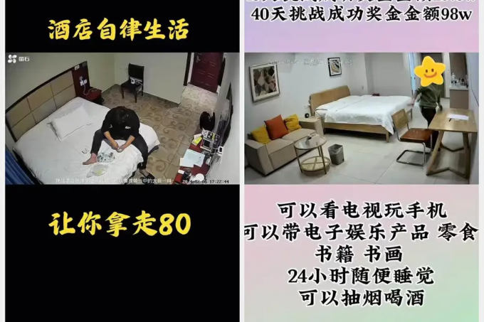 “自律挑战”主要凭借短视频传播,主办方宣称挑战者只需独自待在酒店房间内一段时间,期间遵守“不遮挡面部”“按时熄灯起床”等规则,即可赢取高额奖金。但看似简单的挑战背后却暗藏玄机。