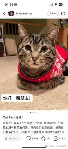对于“TikTok难民”的新来乍到,大部分中国小红书用户都摆出了欢迎和接纳的姿态,有开课教小红书用法的,有和“难民”交流物价、工作问题的,“难民”们也纷纷戏缴“猫/狗税”(Cat/Dog Tax),即分享自家的猫猫狗狗照片,换取中国用户的“认可”和“允许在本平台活动”的证明,还有跟中国用户互亮英文、数学作业求助的……有评论形容,那是一种“世界大联欢的氛围”。