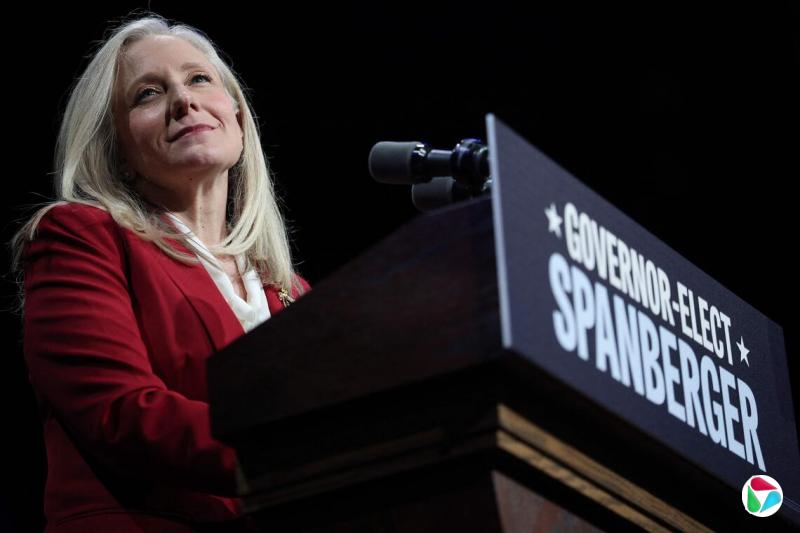 11月4日,弗吉尼亚州民主党州长候选人、前美国众议员阿比盖尔·斯潘伯格在弗吉尼亚州里士满市的会议中心举行的竞选之夜集会上发表讲话。(法新社)