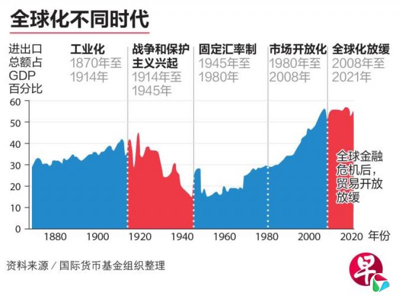 国际贸易占全球GDP的比重,反映全球经济活动中有多少来自跨国贸易,是衡量全球化程度的重要指标。占比越高,说明国家间的经济联系越紧密,全球经济越依赖贸易推动。