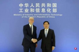 中国工业和信息化部部长金壮龙星期四(10月19日)在北京会见苹果公司首席执行官库克时说,希望苹果公司继续扎根中国、投资中国,进一步提高对华合作层次和水平。