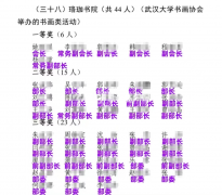 纵览新闻记者在武汉大学共青团官网查询到,2023年9月21日,武汉大学公布了第二十九届学生社团文化节获奖名单,从名单中可以看到,“珞珈书院”属于普通类主题项目,系武大书协举办的书画类活动。在武大书协公众号,记者搜索后看到,武大书协分别于2022年5月29日和2023年5月27日举办了当年的换届大会,纵览新闻记者将两届换届公示名单与获奖名单对比后发现,按照第二十九届学生社团文化节“珞珈书院”活动获奖名单,44名获奖人员中的确有39人是武大书协的现任成员,其中30人担任副部长及以上职务,9人为部委,剩余获奖5人是该协会前任成员。记者依照上述方法核对了该校第二十八届学生社团文化节“珞珈书院”一、二等奖获奖名单,其中一等奖6人,均为武大书协当时的副部长以上成员,二等奖15人,也均为武大书协当时的协会成员。