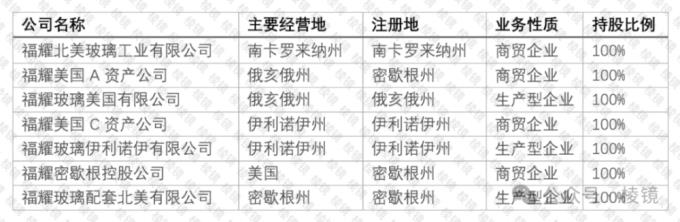 福耀在美国的子公司均为直接或间接100%持股。来源:公司财报