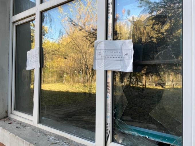 工业博览园一些厂房窗户上贴着封条