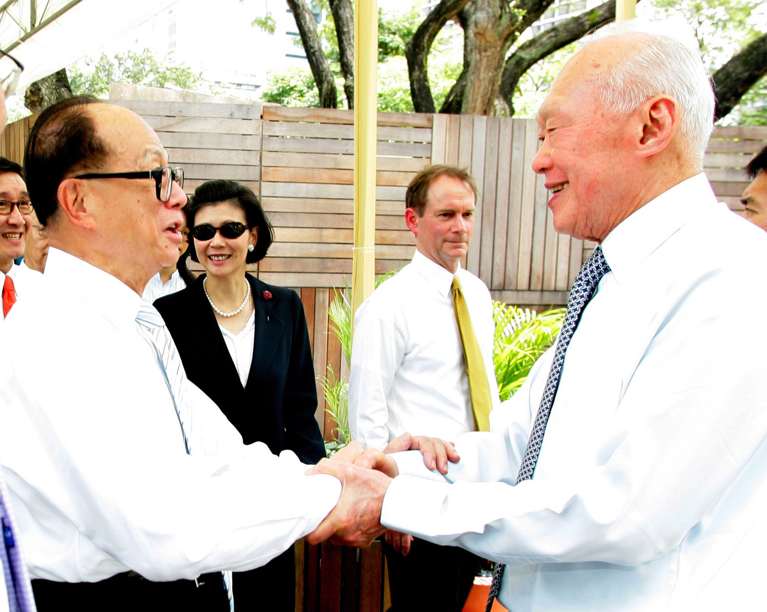 香港商人李嘉诚感性思念故友,两位年龄相仿的长者惺惺相惜之情尽在不言中。 图为2006年新加坡管理大学李嘉诚图书馆开幕,时任内阁资政李光耀以主宾身份出席盛典。(档案照)