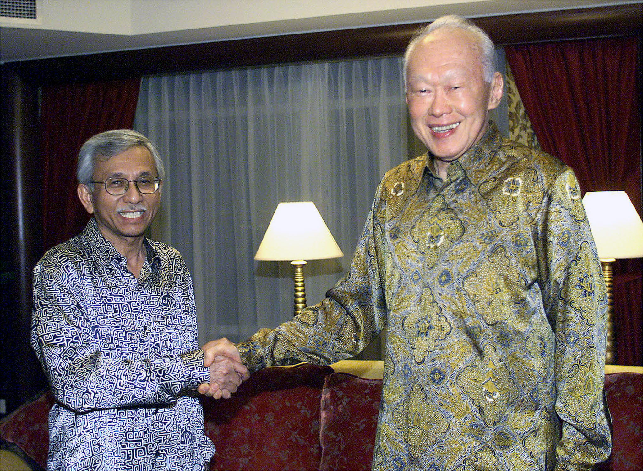 马来西亚前财政部长敦达因透露两人无数次互访长谈来解决新马之间太多不为人知的分歧。图为敦达因与时任内阁资政李光耀2000年8月14日于吉隆坡会晤。(档案照)