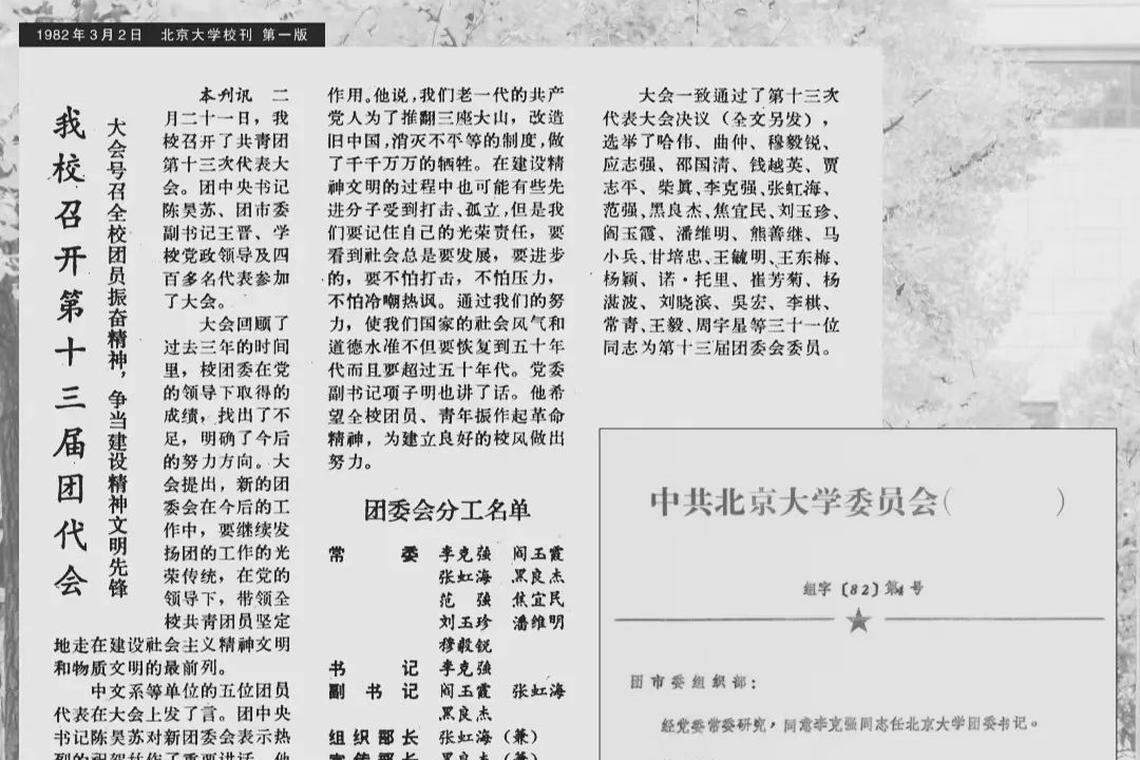 北大校刊在1982年3月2日刊发的文章中,提到李克强被任命为北大团委书记的消息。(北京大学校报微信公号)