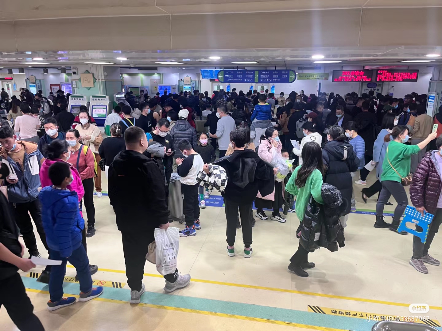 社交媒体X(前称推特)流传据称是北京儿童医院的画面显示,医院挤满求诊人潮,光是等验血的号次都叫号至2052号,排队的人龙蔓延至楼梯间还看不到尽头。