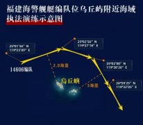 中国海警星期四(5月23日)在微信公众号发布福建海警舰艇编队在乌丘屿附近海域执法演练的示意图。(中国海警微信公众号)