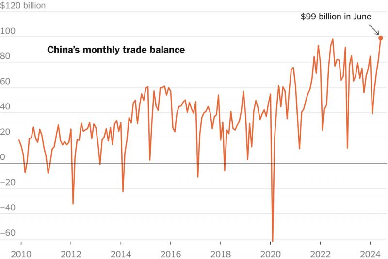 外交关系委员会高级研究员、曾在奥巴马和拜登政府任职的布拉德·塞策说,6月份的数字“甚至低估了中国的贸易实力”。因为出口价格一直在下降,是空调、太阳能电池板等产品的实际出口数量以极快的速度增长导致上个月贸易顺差大幅增加。
