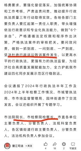 近日,湖北省潜江市官方媒体潜江日报发布的一篇会议报道引起众多关注,报道称市委副书记、市长杨勇在发言中要求“坚决杜绝行政诉讼败诉案件发生”。