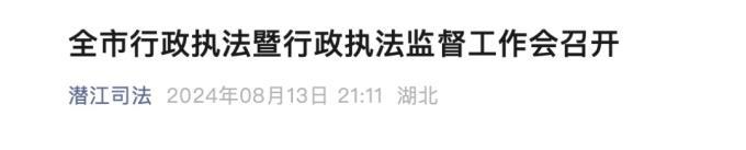 据该报道内容,该会议为8月12日召开的潜江市行政执法暨行政执法监督工作会。市委副书记、市长杨勇出席会议并讲话。