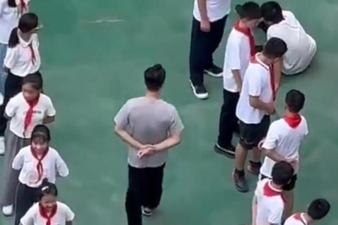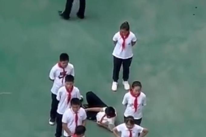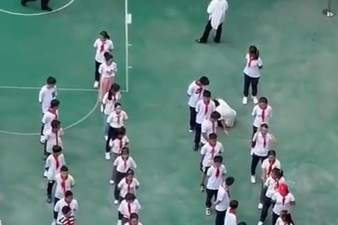 网传截图显示,视频是学校附近居民在自家阳台上拍摄的。拍摄者称视频中的男老师体罚学生,让孩子们在大太阳下站了足足半个小时,结果“一个孩子倒下去了,谁都没管”。