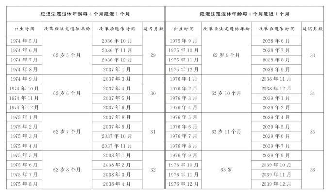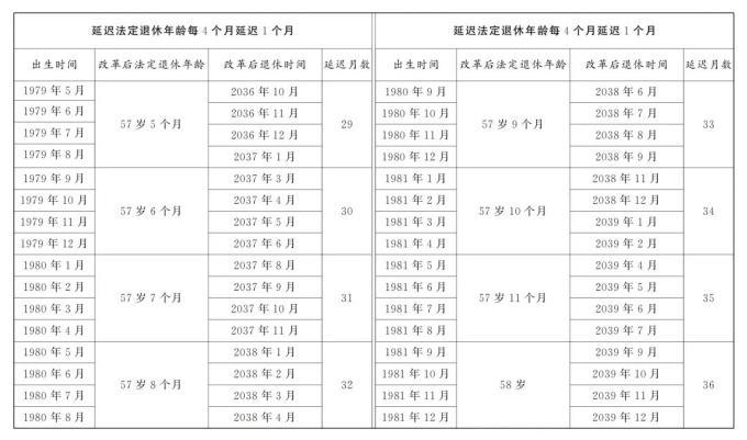 2.原法定退休年龄五十五周岁的女职工延迟法定退休年龄对照表