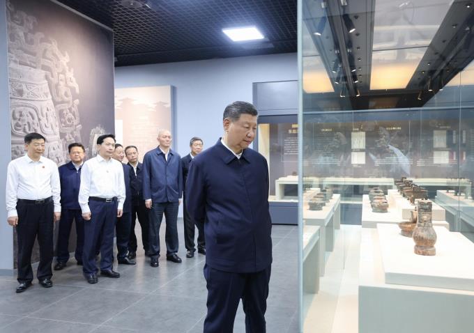 据中新社报道,今年9月10日,习近平到陕西宝鸡青铜器博物院考察时说,中华文明五千年,还要进一步挖掘,深入研究、阐释它的内涵和精神,宣传好其中蕴含的伟大智慧,从而让大家更加尊崇热爱,增强对中华文明的自豪感,弘扬爱国主义精神,把中华优秀传统文化一代一代传下去。