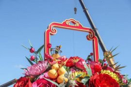 花篮的吊装在星期天(9月22日)完成。花坛顶高18米,篮体高16米,预计星期三正式亮相前,还将在花坛底部摆放花卉构成如意图案。