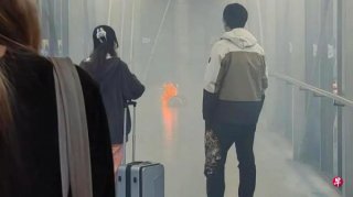 报道引述一名亲历者表示下飞机进入登机桥时,前方一名乘客背包的侧面冒出一点烟,几秒后突然开始大量冒烟,“像干冰一样。”