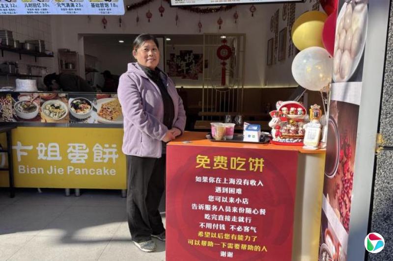 这是一家卖鸡蛋煎饼的小店,也是上海近10家提供免费餐的小店之一。