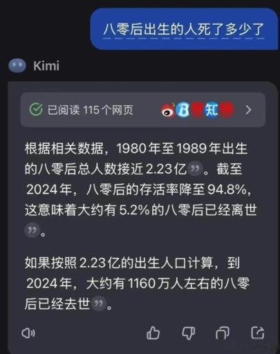 这组宣称取自第七次人口普查的“权威数据”显示,截至2024年末,80后死亡率已突破5.2%,相当于每20名80后就有一人已去世,死亡率甚至高于比他们年长10年的70后群体。