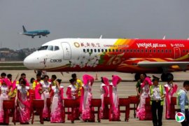 综合新华社和中新社等报道,由成都航空湿租(wet lease)给越南越捷航空的两架中国国产C909客机,星期六(4月19日)正式开通河内-昆岛-胡志明的往返航班,标志着中国商飞公司制造的飞机在越南启动商业运营。