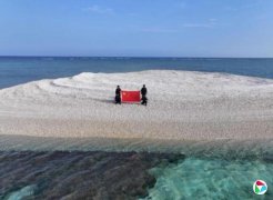 中国官媒称,中国海警本月中旬登上南中国海的铁线礁(Sandy Cay),并展示五星红旗。