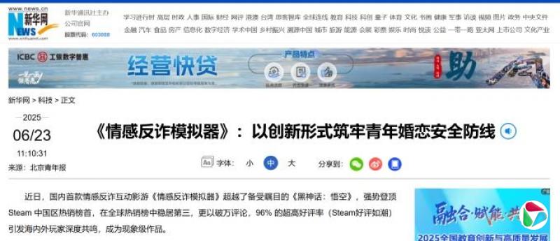 这篇题为“《情感反诈模拟器》:以创新形式筑牢青年婚恋安全防线”的文章认为,这款游戏不仅是创新的反诈工具,更是婚恋文明的传播载体。通过揭露虚假人设、情感操控等骗局本质,强化 “真诚为交往之本” 的伦理底线;在 “经济纠葛”“危机共渡” 等剧情模块中,引导玩家深化对权利义务对等性的认知;以角色互动为纽带,让玩家切身感悟尊重边界、平等沟通的现代婚恋文明内核。