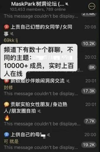 据《南方都市报》旗下“南都N视频”报道,“MaskPark树洞论坛”群组成员均为中国男性,总规模超10万人;频道下设至少20个细分群组,其中部分群组订阅人数超过22万人,主题均与色情内容紧密相关。