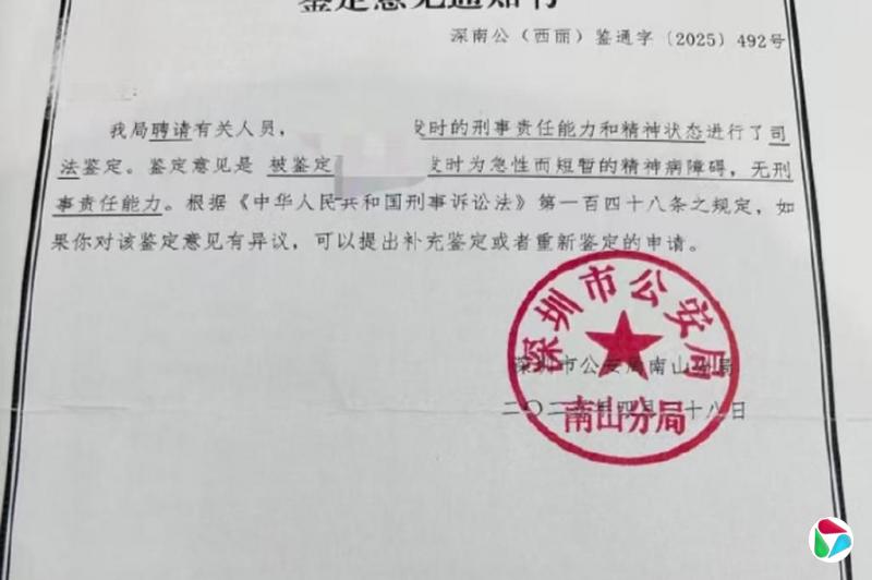 李黎报警后,嫌疑人被抓获。但当地警方随后告诉她,经司法鉴定,嫌疑人案发时为“急性而短暂的精神病障碍”,无刑事责任能力。这名男子被送到深圳市康宁医院几天后,就被家人接回江西老家。她担心,男子以后可能还会侵害其他人。