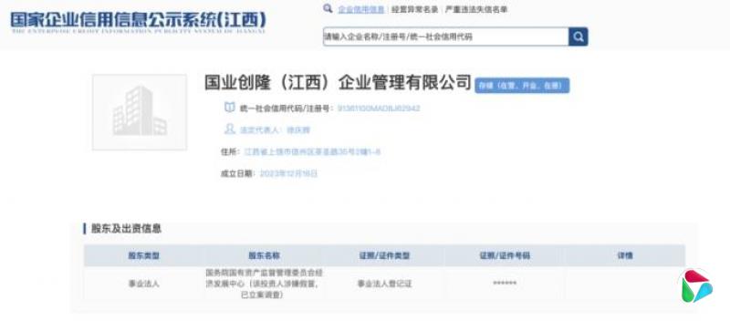 澎湃新闻查询发现,上饶市市场监督管理局曾于今年5月发布公告,公告提及,2025年5月9日,举报人向该局反映国业创隆(江西)企业管理有限公司提供虚假材料注册假国企,其行为涉嫌构成提交虚假材料或者采取其他欺诈手段隐瞒重要事实,取得公司设立登记。接到举报后,该局对国业创隆(江西)企业管理有限公司涉嫌提供虚假材料注册登记进行撤销登记的立案调查。