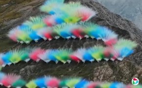 据九派新闻早前报道,始祖鸟星期五联手蔡国强在喜马拉雅山放烟火。现场视频显示,蔡国强通过火药爆破在山脊点燃三幕烟花,形成“升龙”动态景观。