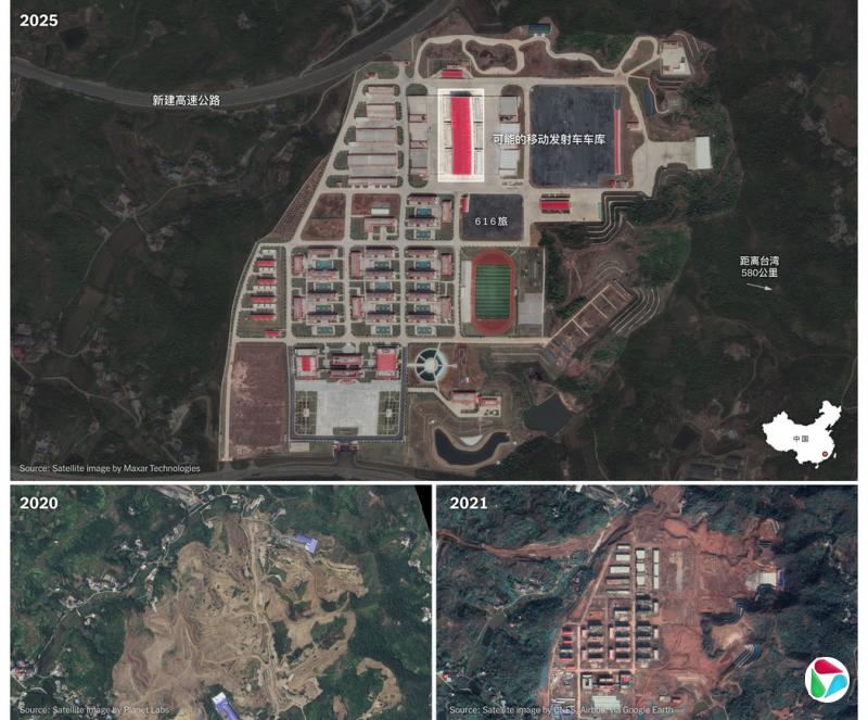 据美国国防部估计,掌控中国核导弹和常规导弹的火箭军已在四年里增加了近50%的武器储备,让导弹数量达到了约3500枚。虽然尚不清楚目前有多少枚导弹部署在东海岸,并以台湾为目标,但卫星图像显示,火箭军的导弹旅近年来已建造了新的、更大的基地,还建了更多的发射台。