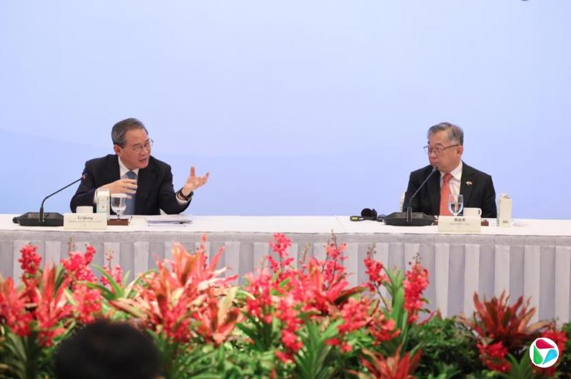 中国总理李强与新加坡代总统张赞成会面,针对中国和新加坡的合作展开讨论。