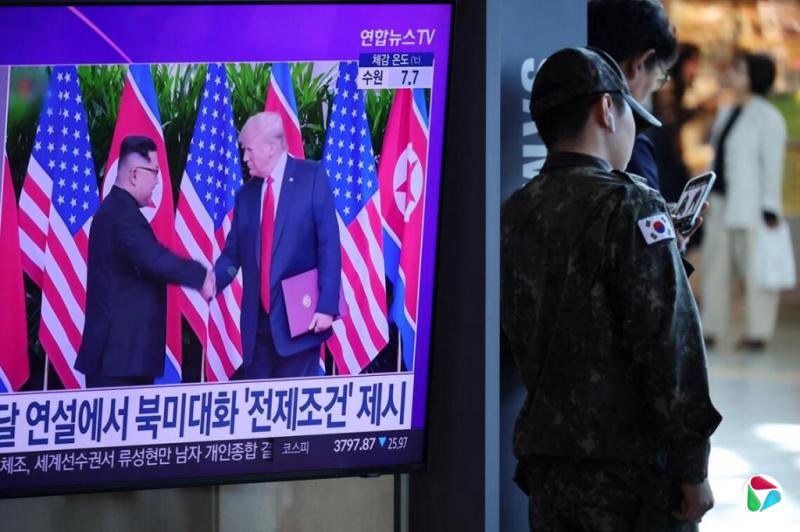 韩国电视新闻报道称,美国总统特朗普可能与朝鲜领导人金正恩举行峰会。(路透社)
