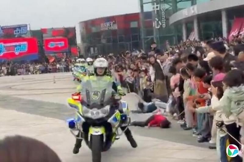 上周六(11月8日)的苏州警营开放日活动期间,一名女骑警进行摩托车表演时,失控撞向围观人群,有儿童被撞后倒地。(互联网)