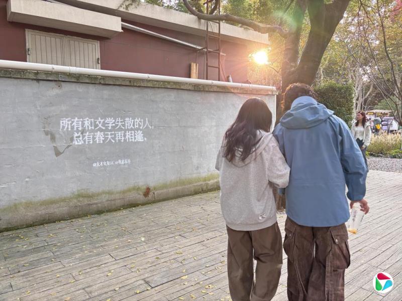 这也说明,文学并没有消失。相反,我们或许比过去更需要它。当我在活动现场,看到阳光照在印着一句话的墙上,年轻人排队与它合影时,这种感觉愈发清晰。墙上写着:“所有与文学失散的人,总有春天再相逢。”