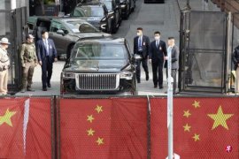 旧金山时间11月15日上午10点30分左右,中国国家主席习近平乘坐的红旗轿车与中国高层代表团车队离开瑞吉酒店,前往费罗丽庄园出席中美元首峰会。