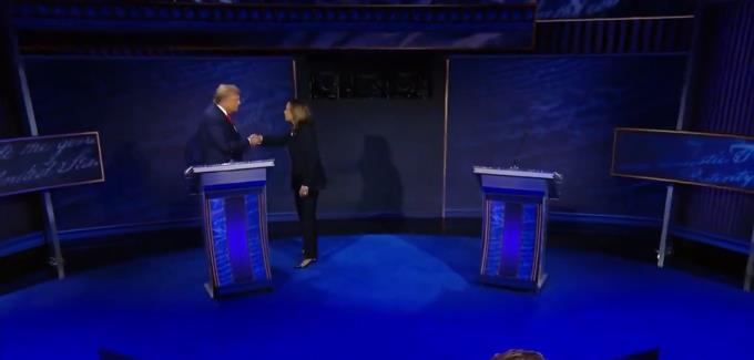 《纽约时报》报道,社媒用户在辩论一开始就上载了哈里斯走向特朗普,与他握手并自我介绍的那一刻。
