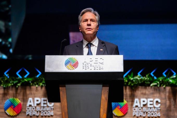 相较于官方领导人着眼于全球经济前景的致辞,同场讲话的美国国务卿布林肯主要回顾拜登政府过去四年在亚太区的倡议和贡献,对外界关注的特朗普未来政策走向则避而不谈 。他发言时语调相对轻松,最后登场的他还打趣说:“我知道我是你们和一杯皮斯科酸酒(秘鲁名酒)之间的唯一阻碍。”