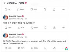 四分钟后,他写道:“现在是买入的好时机!!!DJT”