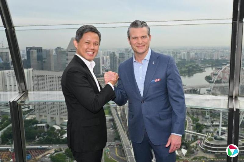 赫格塞斯感谢新加坡持续支持美军在本区域活动,包括为美军的轮换部署、军舰和军机停靠等必要作业提供便利。陈振声则感谢美国多年来允许新加坡飞行员赴美训练,并支持新加坡武装部队引进美国先进技术,包括采购F-35战机。