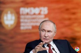 俄罗斯总统普京星期五(6月20日)在圣彼得堡国际经济论坛全体会议上,就以色列和伊朗、乌克兰以及世界滑向第三次世界大战的风险发表讲话。