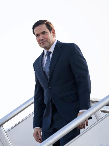 7月10日,美国国务卿鲁比奥抵达马来西亚吉隆坡附近的梳邦空军基地。(路透社)