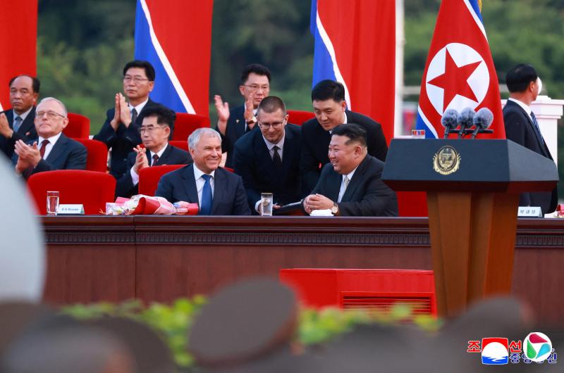 应朝鲜最高人民会议邀请,俄罗斯国家杜马主席沃洛金率领俄罗斯议会代表团等俄方人士出席了当天的活动。