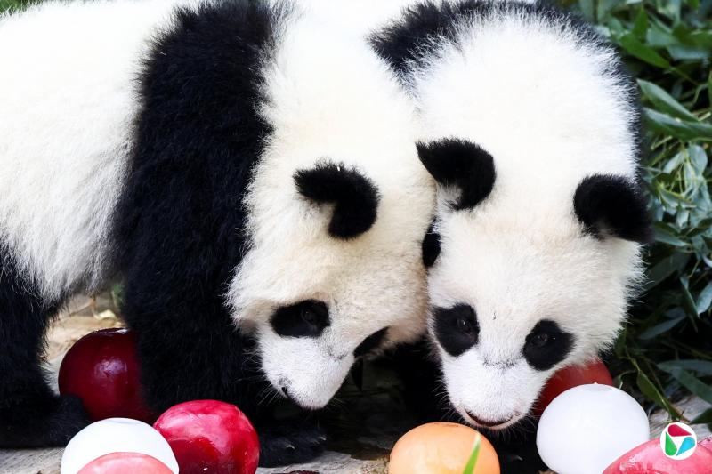 柏林动物园为这对“姐妹花”精心准备一场特别的生日庆祝活动。记者在现场看到,“熊猫园”内竖起一块醒目的红色数字木牌“1”,象征它们成长的第一个年头。场地上摆放着由甜菜汁和胡萝卜汁制成的彩色冰球,插着一捆“竹蜡烛”,以及冻有竹子的大冰块生日蛋糕。