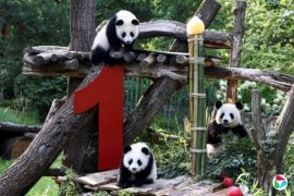 在德国出生的第二对大熊猫双胞胎“梦好”和“梦甜”星期五(8月22日)迎来一岁生日。