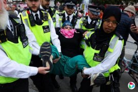 数百名抗议者星期六(10月4日)在伦敦市中心举行反对将亲巴勒斯坦组织“巴勒斯坦行动”列为非法组织的示威;警方以公开支持被禁组织为由逮捕了约442人。