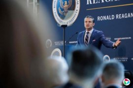 在演讲中,赫格塞斯极力维护美国总统特朗普,声称特朗普是里根及其“以实力求和平”理念的真正继承人。