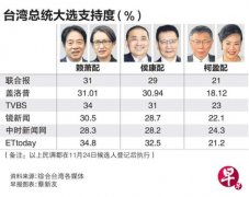 国民党士气大振,民调支持度迅速追上民进党正副总统候选人赖清德与萧美琴的“赖萧配”,在几份民调中,双方差距已进入抽样误差范围内,等同打成平手。