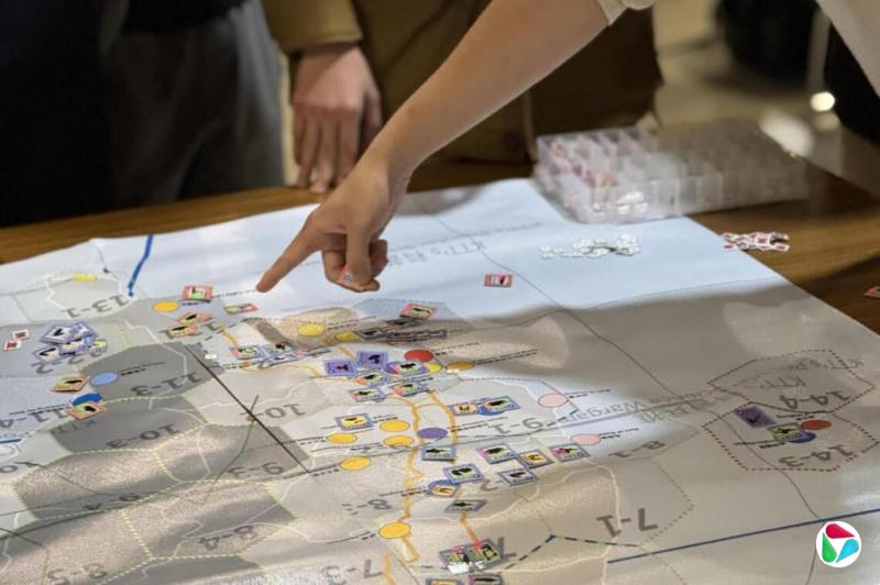 11月底的周五傍晚,台湾大学社会科学院学生开放空间里,几张桌子并排,上头铺着台湾本岛、台海地图及密密麻麻的兵棋。动次时间一到,学生紧凑讨论,下一秒就得决定是否升高戒备、寻求国际协调或调整战备部署。